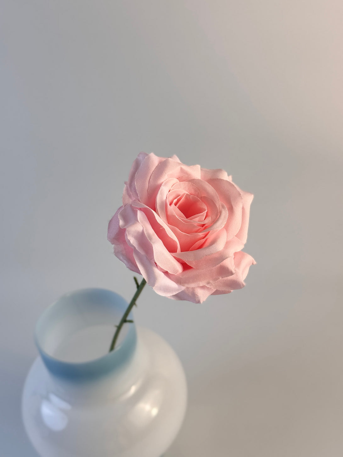 Featuring delicate petals and a soft shimmering finish, this lifelike faux rose adds luxury to any DIY bouquet, home décor, or flower arrangement.