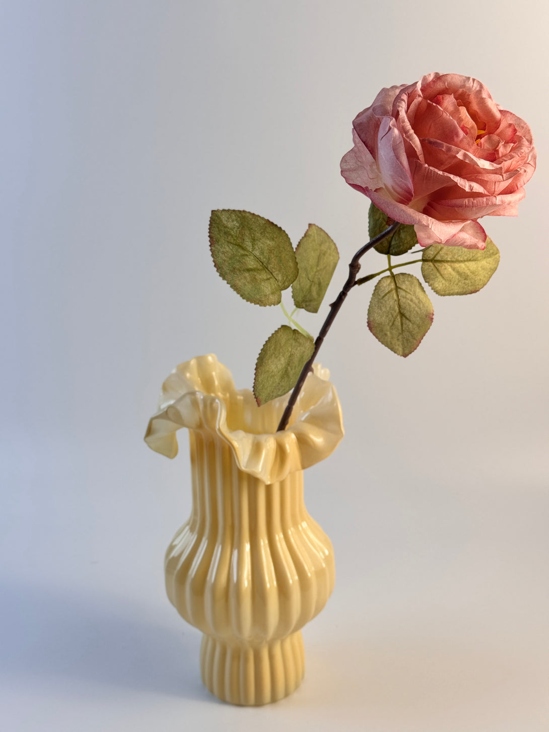 Designed with softly tinted petals and realistic texture, this faux rose brings vintage elegance to any bouquet, centerpiece, or handmade arrangement.